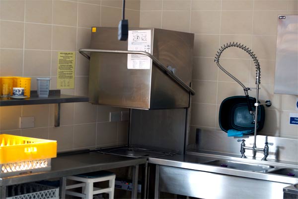 Our fully-equip, stainless steel kitchen has everything you need to prepare and service, hot and cold food and drink. The kitchen is capable of serving 70 people with a cooked meal and dessert. When making a brew, all our cup and saucers are stored on trays under the serving counter. Afterwards, clearing-up is speeded-up with our commercial dishwasher.